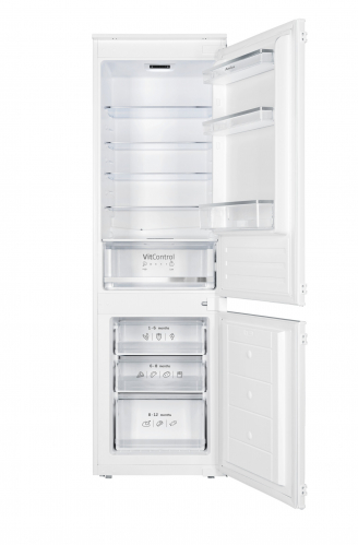 Vrata so prestavljiva in jih je mogoče namestiti na levo ali na desno stran. Zamrzovalni predal je na tečajih, zato ga je mogoče izvleči v celoti, ko so vrata odprta pod pravim kotom.