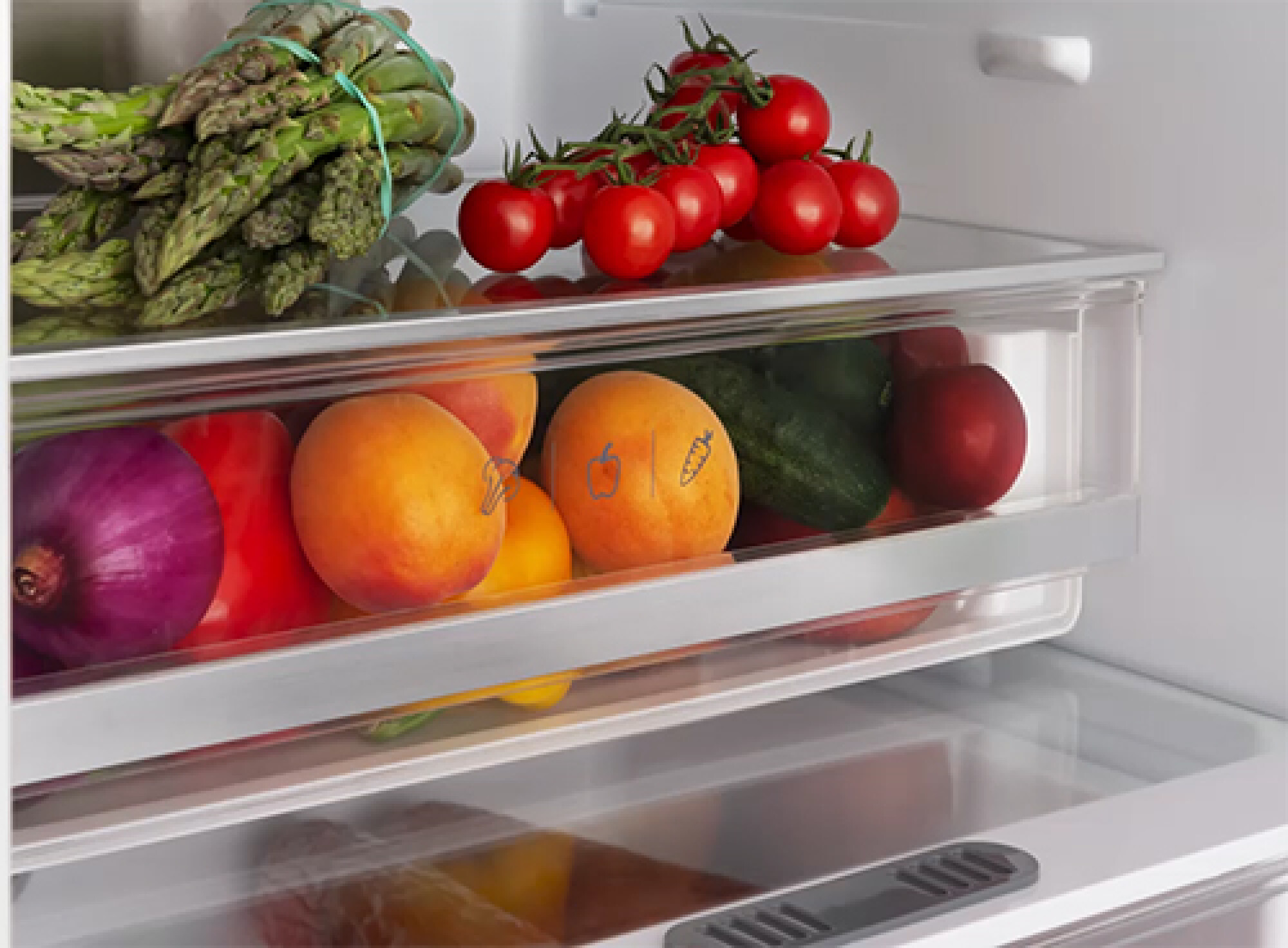 Vrata so prestavljiva in jih je mogoče namestiti na levo ali na desno stran. Zamrzovalni predal je na tečajih, zato ga je mogoče izvleči v celoti, ko so vrata odprta pod pravim kotom.